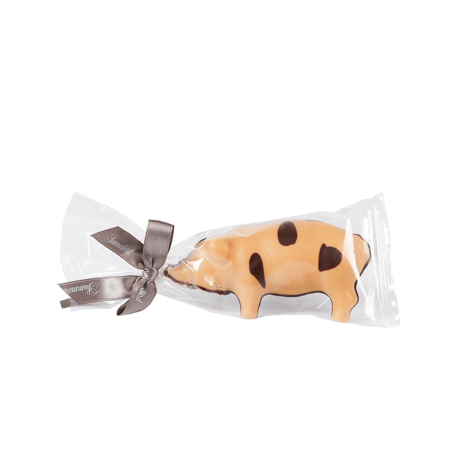 Julegris af ren marcipan, lavet på stenvalsede middelhavsmandler, overtrukket med vores prisvindende og populære Amber Classic-chokolade og afslutningsvist dekoreret med mørk chokolade Amazonas 61%.