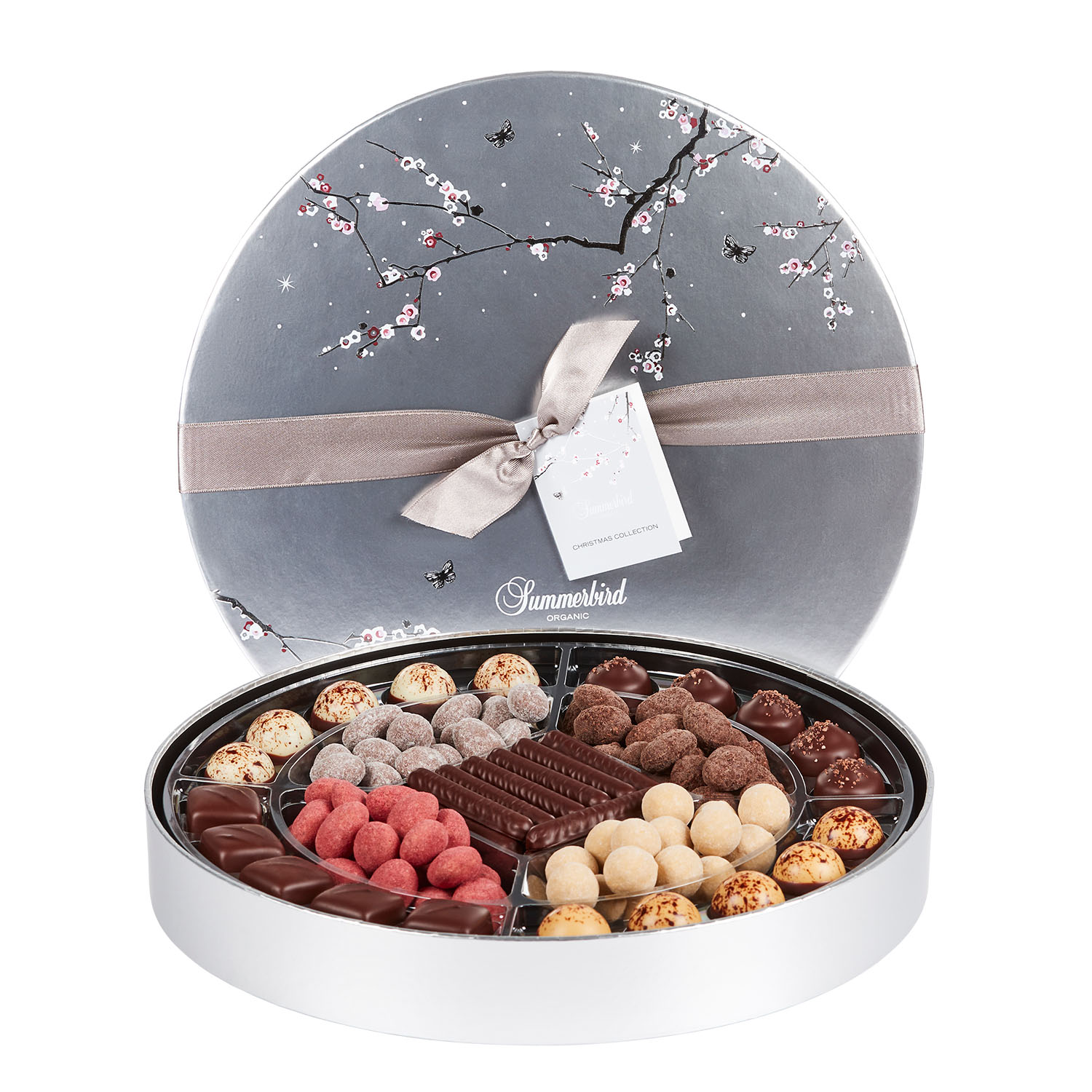 Æsken byder på en verden af velsmag i form af marcipan, lavet på stenvalsede middelhavsmandler, dragerede hasselnødder og mandler, fyldte chokolader og ren mørk chokolade.