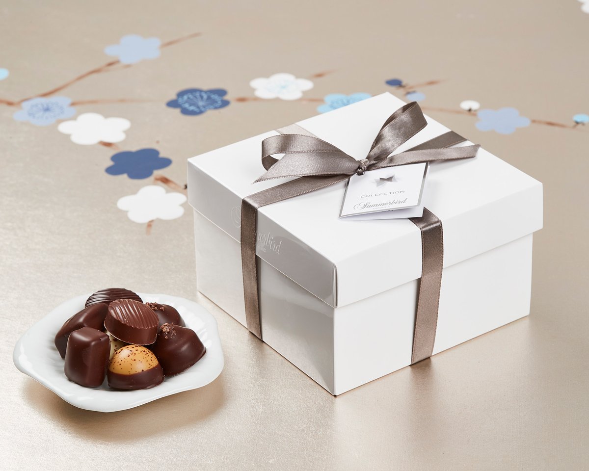 Collection 27 indeholder 9 forskellige varianter af vores raffinerede, klassiske fyldte chokolader. Æsken byder på en verden af velsmag i form af f.eks. marcipan, praliné, mynte og karamel. En æske, der ikke kun fungerer perfekt som gave, men i den grad egner sig til alle, som sætter pris på velsmag og høj kvalitet.