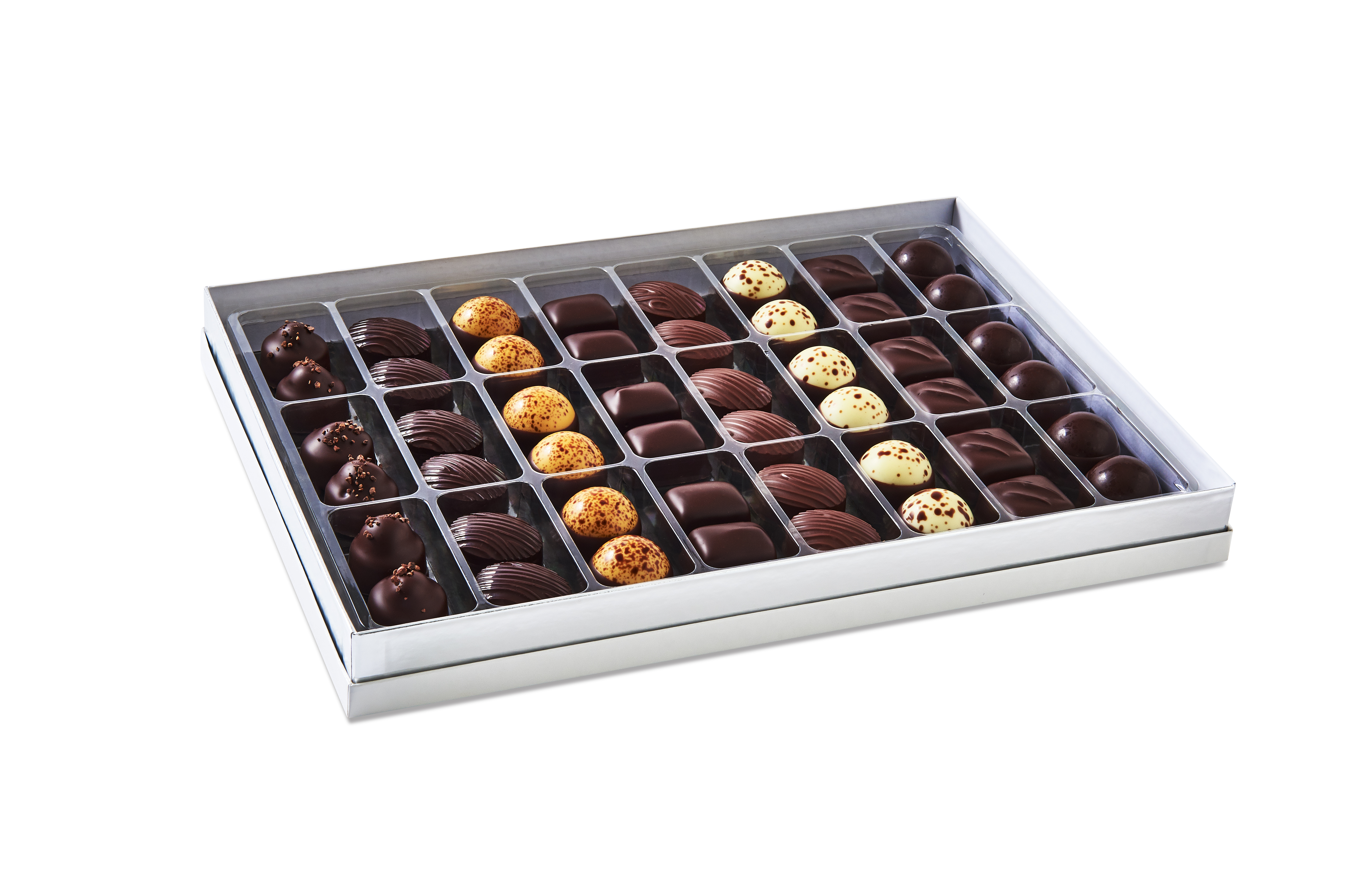 Gaveæsken indeholder i alt 48 stk. chokolade.