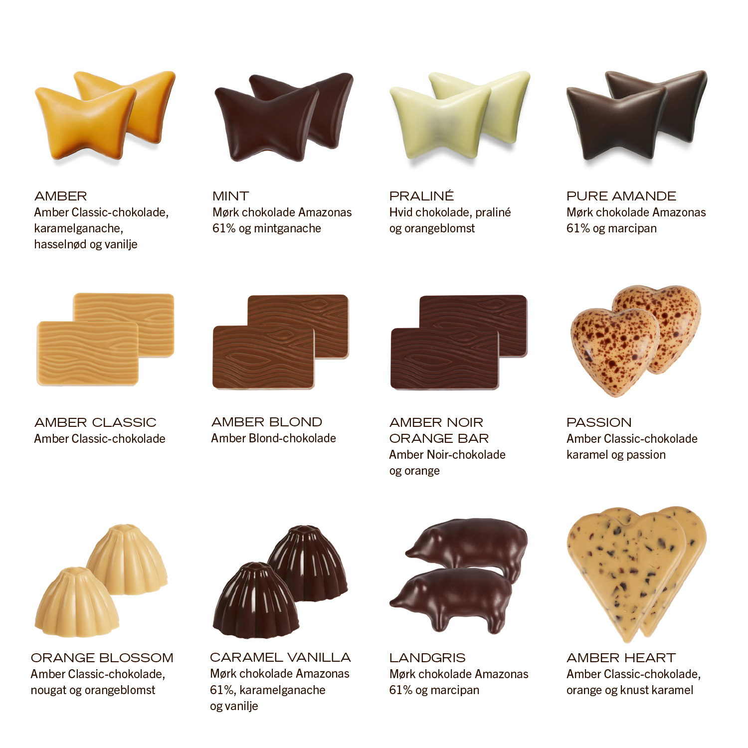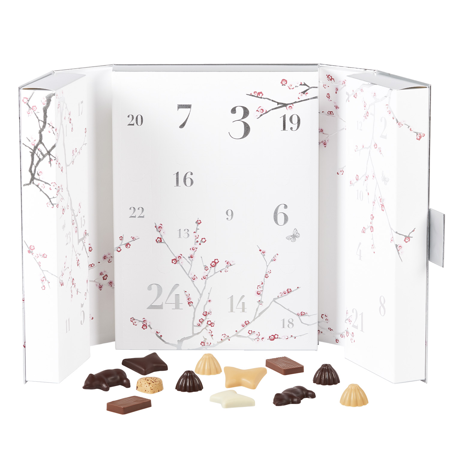 Édition Noël er fyldt med vores ikoniske Summerbirds, raffinerede chokoladebarer, marcipan af stenvalsede middelhavsmandler overtrukket med mørk chokolade Amazonas 61% og smagfulde, fyldte chokolader. Bag hver låge gemmer sig 2 stykker chokolade. Édition Noël indeholder 12 forskellige varianter.