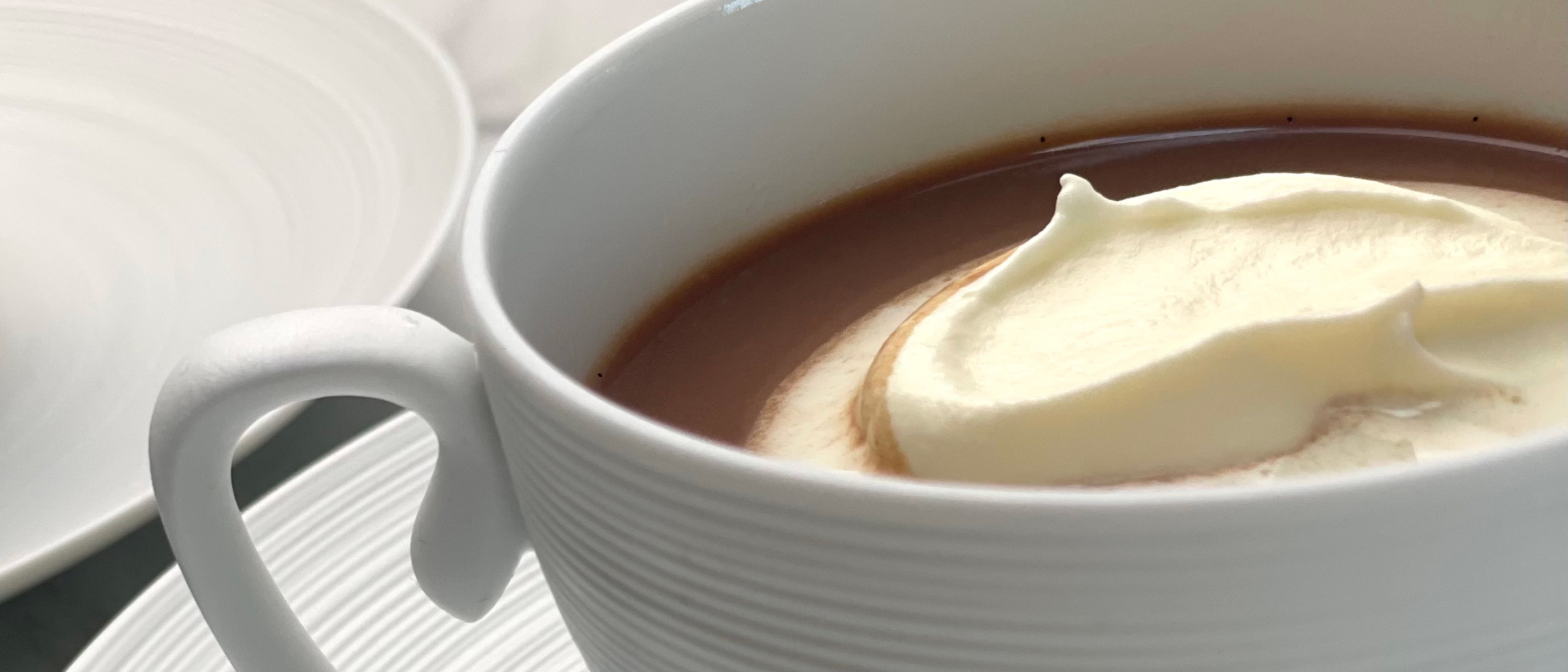 - Tilsæt nu Amber Noir, vaniljestang, vaniljesukker og mælk i en passende størrelse gryde. Bring det langsomt tæt på kogepunktet, under omrøring, til chokoladen er smeltet. Tag herefter gryden af varmen, fjern vaniljestangen og servér chokoladedrikken straks.