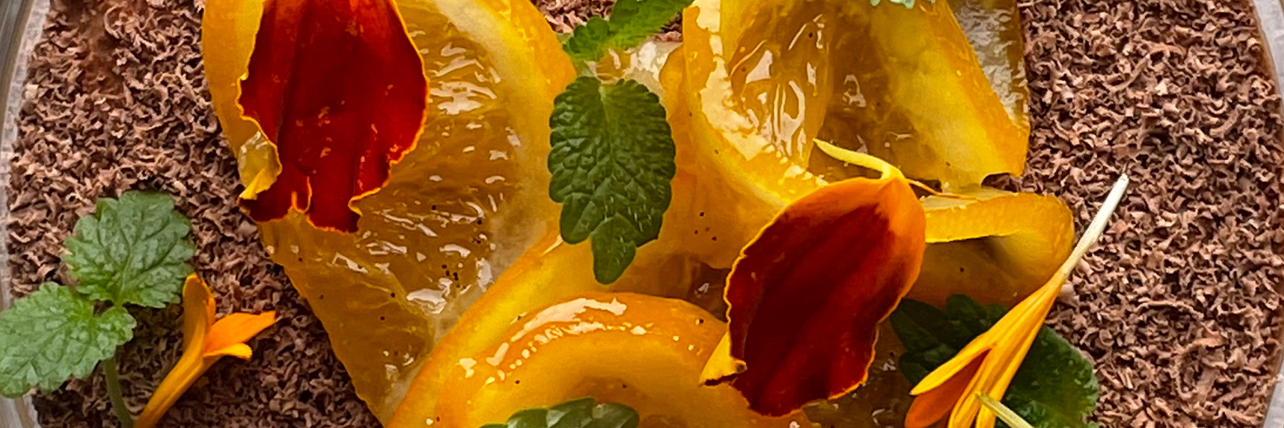 Chokolademousse af Amazonas 61% & Vaniljesyltet appelsin