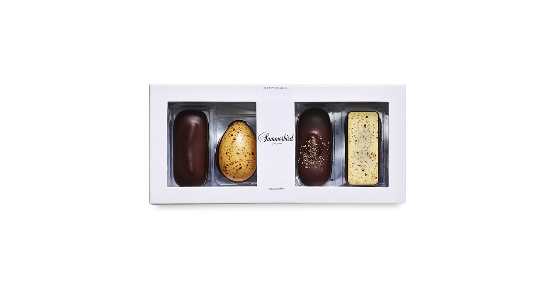 Gaveæsken indeholder 4 forskellige varianter af vores ikoniske Petit Fours-stykker. Æsken byder på en verden af velsmag og egner sig perfekt til alle, som sætter pris på klassisk velsmag, godt håndværk og fantastiske råvarer.