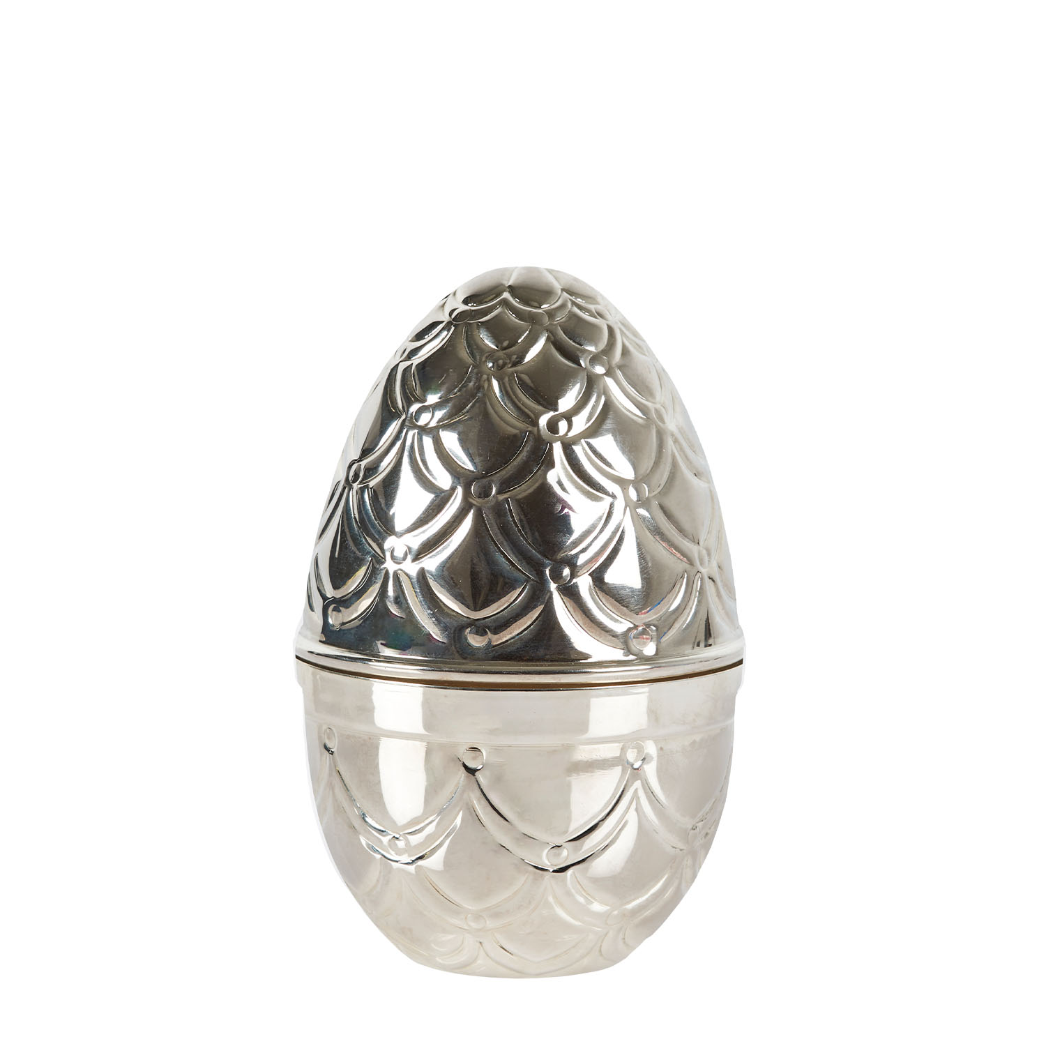 Det ikoniske sølvæg er både en påsketradition og kærlig forårsgave, fyldt med fine hånddekorerede, økologiske chokoladeæg i smukke farver og med skønne fyldninger. Juvelér Carl Fabergés kunstneriske og historiske påskeæg er inspirationen til de sirlige guirlander på årets sølvæg.