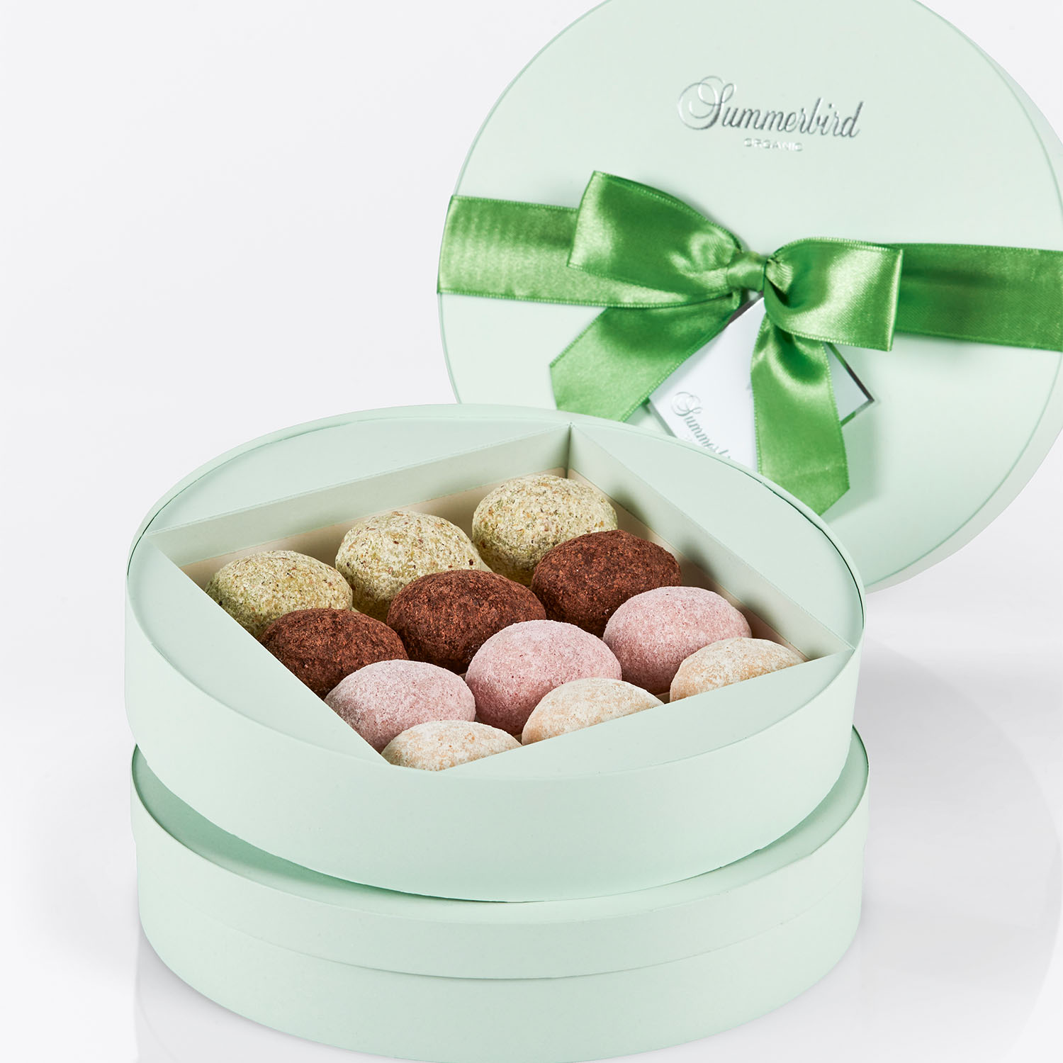 Unik påskeæske, fyldt med 4 enestående varianter af vores dragerede Velvet Eggs. Æsken byder på henholdsvis 3 stk. Amber Caramel, 3 stk. Dark Praliné, 3 stk. Spring Liquorice og sidst men ikke mindst 3 stk. af nyheden Pistachio Velvet Eggs med marcipan og pistacieganache.