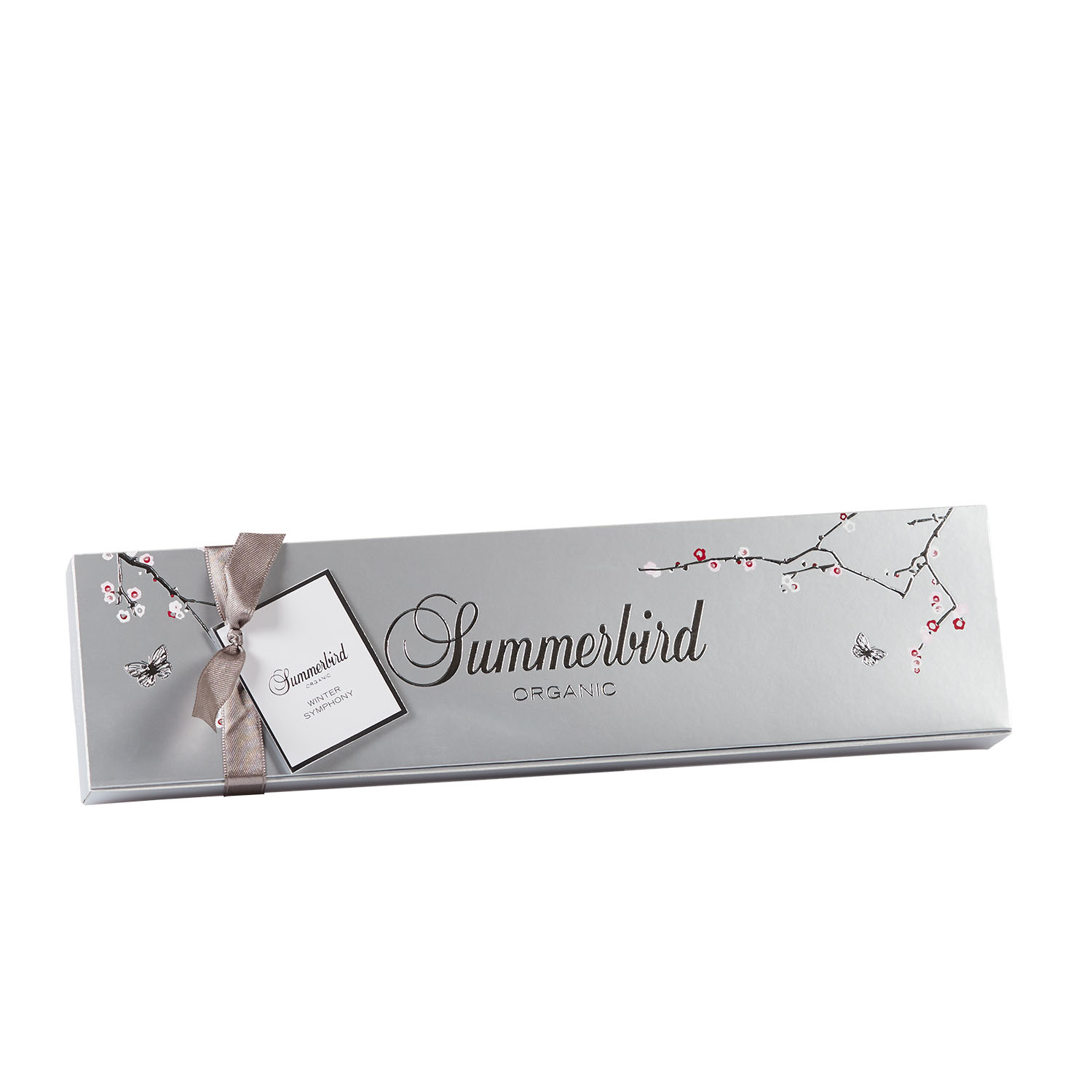Vores to ikoniske chokoladesommerfugle, Pure Amande og Amber, samlet i en smuk gaveæske. Dette er ganske enkelt en lille bid af Summerbirds historie. Pure Amande er ren marcipan, lavet på stenvalsede middelhavsmandler og overtrukket med et tykt lag kraftig mørk chokolade Amazonas 61 %. Amber-sommerfuglen er vores prisvindende Amber Classic-chokolade, fyldt med en raffineret karamelganache, tilsmagt med hasselnød og vanilje.